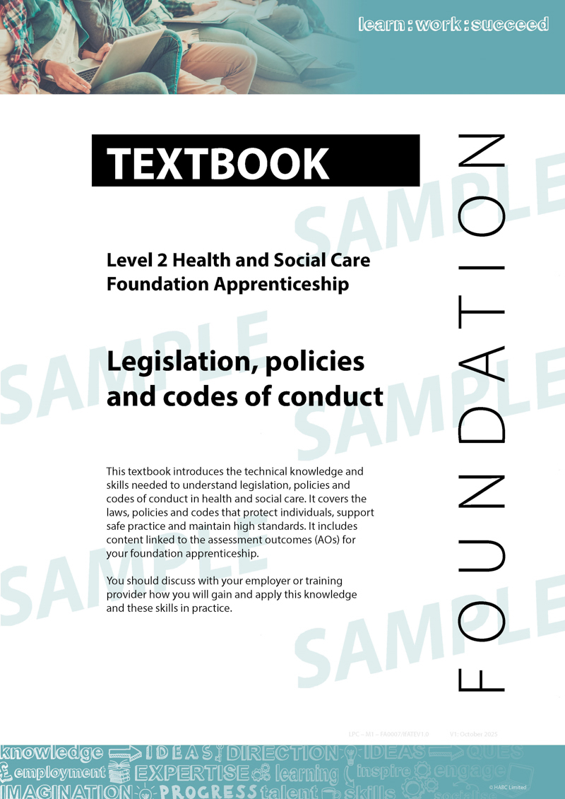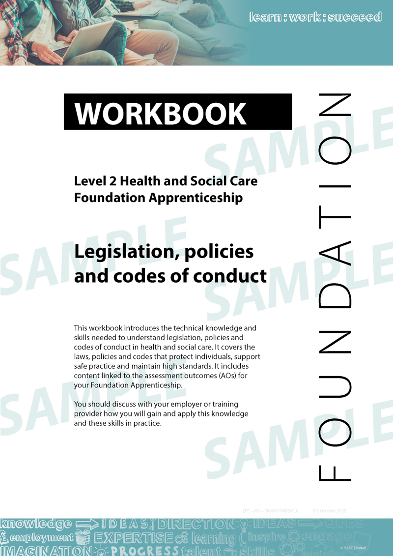 This Apprenti-kit is a learning resource written to support the required knowledge, skills and behaviours of the Level 2 Health and Social Care Foundation Apprenticeship.