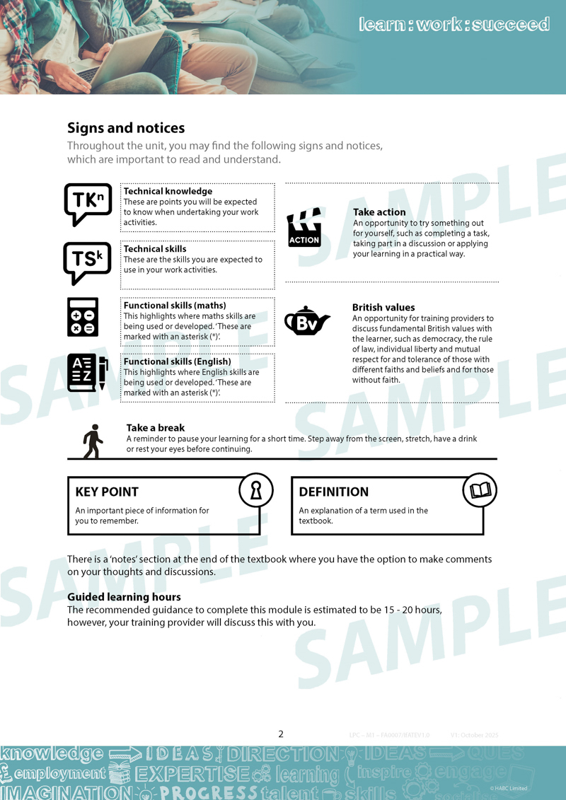 - information and guidance (IAG) booklet for learners