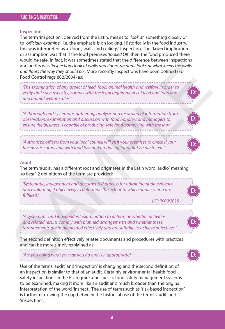 - Designed for the inspection of food businesses learning