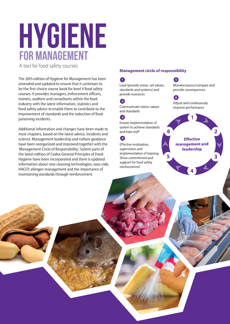 Hygiene for Management is often referred to as the ‘bible’ by food safety professionals. It is the UK’s best-selling food hygiene book for managers, environmental health officers (EHOs), auditors, quality assurance (QA) staff and persons attending level 4 courses.