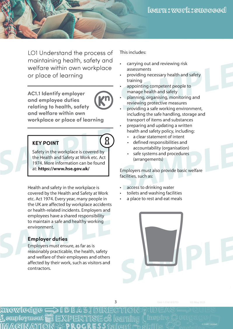 Created to provide support to those learners working towards the Workplace health and safety awareness unit of a Level 1 award in health safety, the kit has been written by some of the leading authorities in the subject....