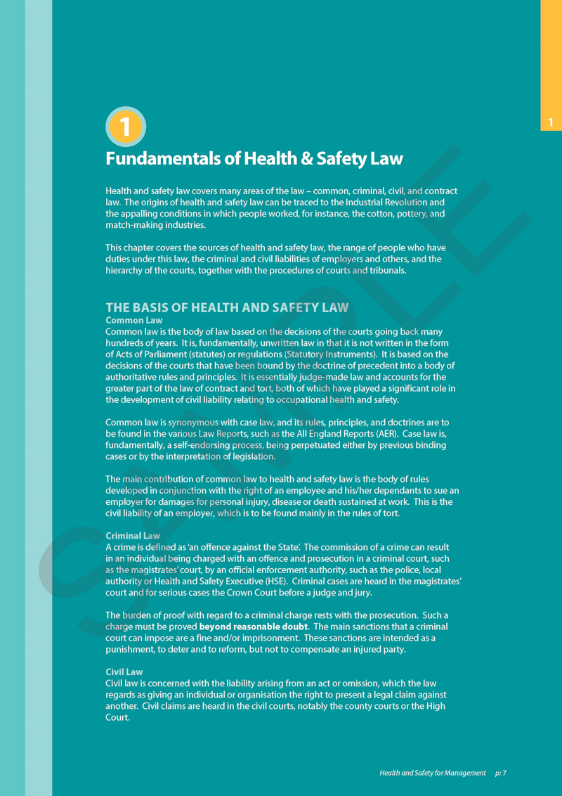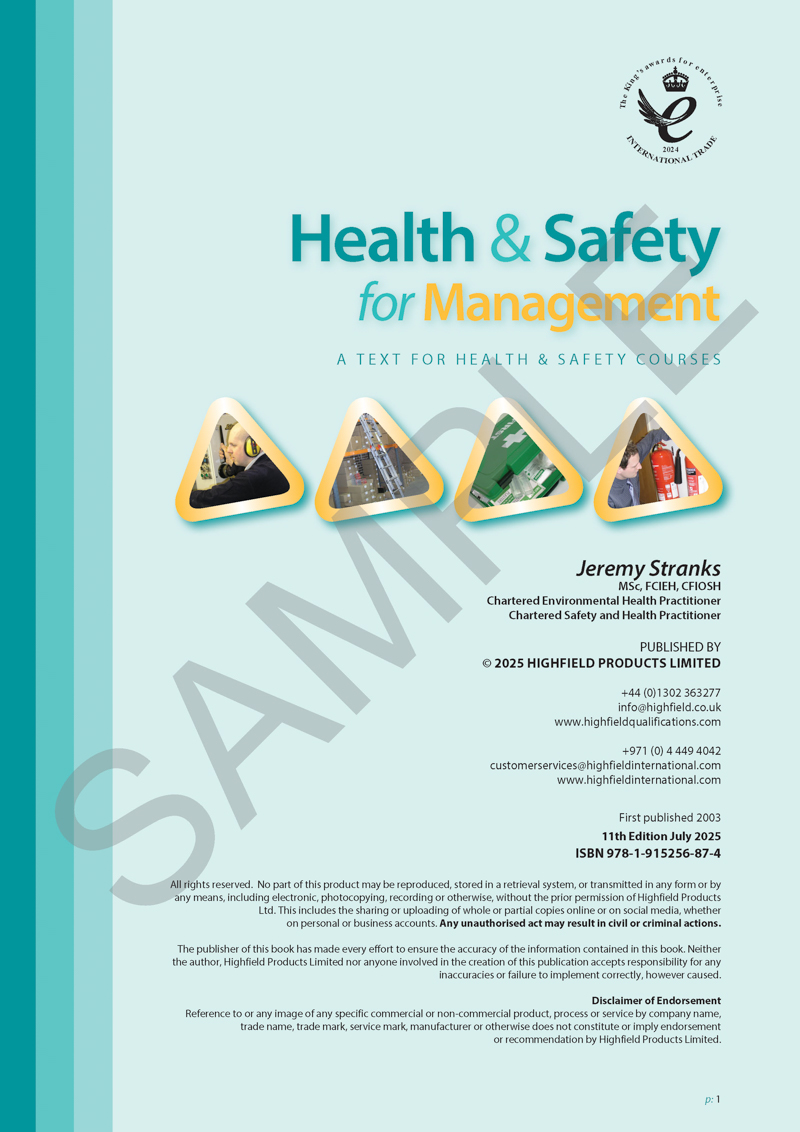 Health and Safety for Management is intended as a practical reference for managers and supervisors and is useful as a supporting text for those taking courses leading to qualifications awarded by Highfield, CIEH or IOSH....